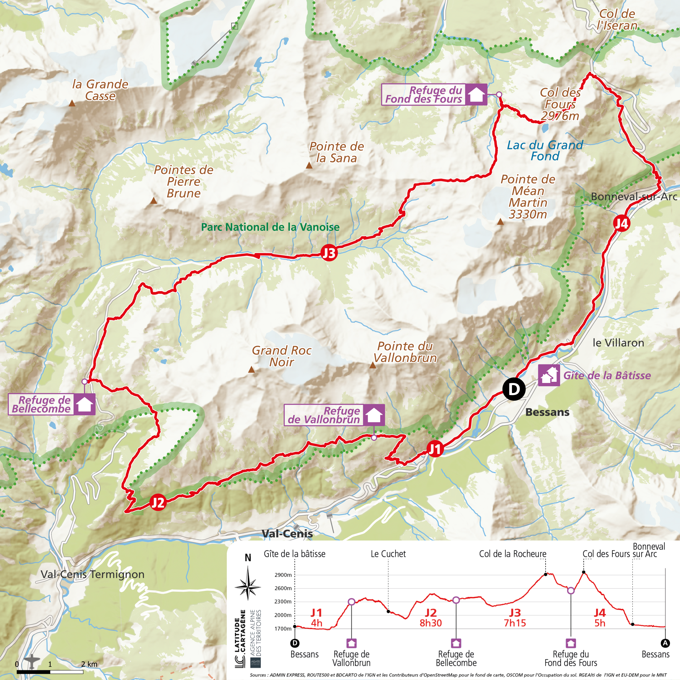 4/ JOUR 4 : Refuge du Fond des Fours (2537m) - Gîte La Bâtisse (1740m) Durée : 5h30 / Dénivelé : +450m / -1240m
