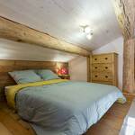 Maison mitoyenne à une maison d'habitation, avec accès indépendant. Rez-de-chaussée par 4 marches) : séjour-cuisine coin salon, une chambre (1 lit 2 personnes 140 x 190 cm), une salle d'eau (douche et 2 vasques), WC séparé. Cheminée décorative (non utilisable). Etage : combles aménagées en sous-pente (hauteur totale inférieure à 1.80 m) avec 2 lits 1 personne et 1 lit 2 personnes (140 X 190 cm). Petit balcon et vaste terrain. Parking privatif pour 2 voitures devant le chalet l'été - l'hiver, suivant l'enneigement, stationnement à l'entrée du Villaron à 200 m.