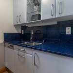 Equipements : Coin cuisine équipé (plaques vitrocéramiques, four, micro-ondes, lave-vaisselle, réfrigérateur) et coin salon avec canapé non convertible et 2 fauteuils.