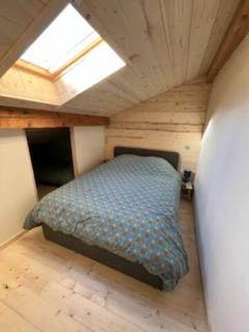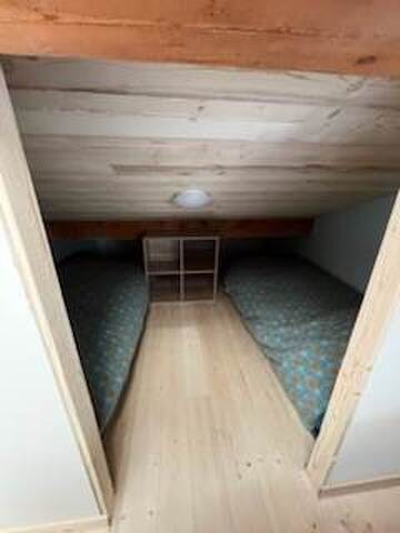- une 2ème chambre en mezzanine avec lit double en 140*200 et un coin cabane avec 2 lits simples de 90*190 (idéal pour les enfants)