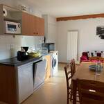Cuisinette équipée : micro onde grill, réfrigérateur, 2 plaques électriques, lave vaisselle.