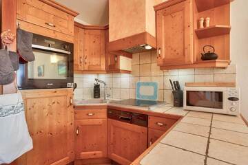 Cuisine entièrement équipée : four chaleur tournante, micro-ondes, réfrigérateur, congélateur, lave-vaisselle, plaques à induction, hotte aspirante.