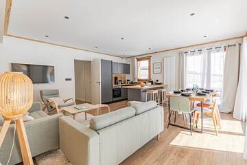 - un grand séjour lumineux de 29 m² avec espace salon et cuisine entièrement équipée